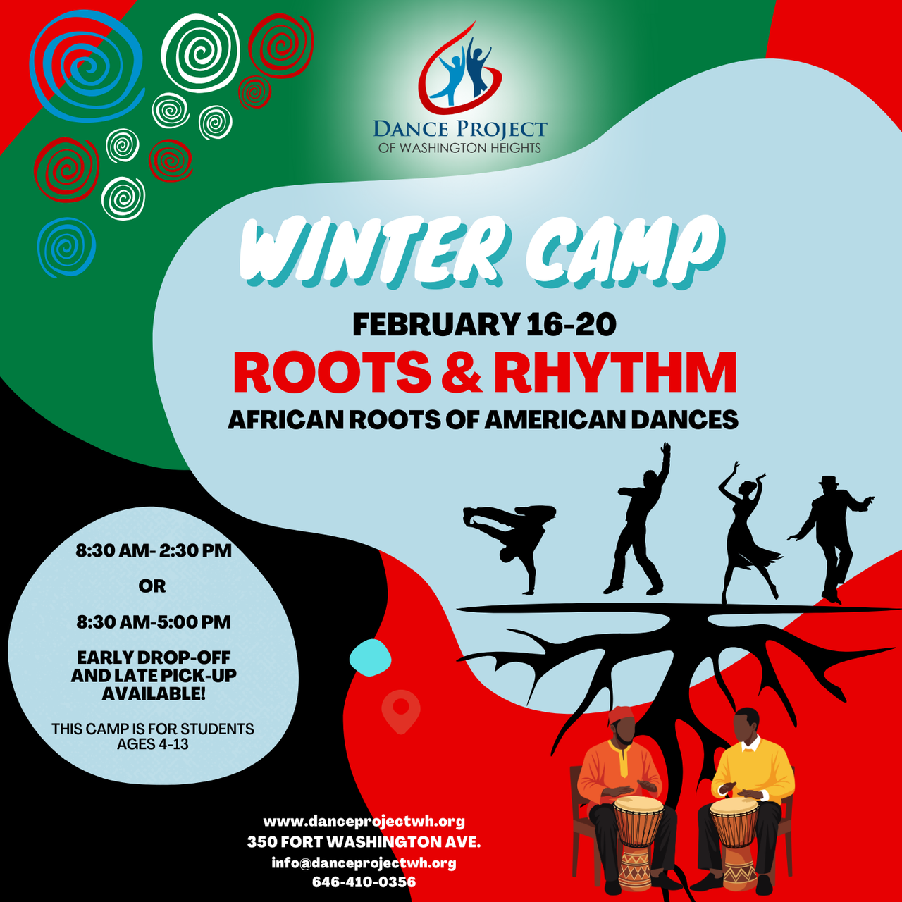 Our most dedicated dancers, these students are chosen by audition each year. They have taken at least one full year of dance technique classes and commit to weekly rehearsals throughout the year in addition to their regular dance technique classes. They perform at various community events. Past events have included The Higher Ground Festival, Danza Highbridge Dance Festival, the opening of NoMaa's Uptown Arts Stroll, the annual Harvest Festival at Fort Tryon Park, The NYC Multicultural Center, the grand opening of Marshall's at the GW Bridege Terminal, Car Free Day, The State of the District, and various events held by Columbia Medical Center.